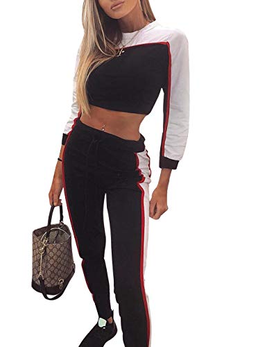 SOMTHRON Traje deportivo de rayas para mujer, corte ajustado, chándal con capucha, pantalones con cordón (WH2, M), Blanco-2, M