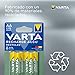 Incluye: blíster de 4 unidades de pila AAA varta rechargeable ready2use accu con una capacidad nominal de 800. mAh
