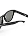Este modelo híbrido tiene un frente de montura TR90 negro mate con un puente en forma de ojo de cerradura, aros redondeados, combinado con patillas de acero inoxidable plateado y terminales negros mate. Las lentes polarizadas son de color gris oscuro.