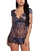 【Diseño atractivo】night El camisón Babydoll tiene un diseño atractivo, frente abierto con una taza de encaje de lencería, mini vestido de encaje, túnica de camisón de encaje estilo malla de pestañas transparentes, muestra su encanto fascinante.