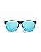Icónico modelo Hawkers One, Unisex, con montura negra y lentes polarizadas azul efecto espejo