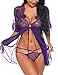 Sykooria【Conjunto Sexy Mujer】 Camisa de malla con malla en la parte delantera abierta camisón de encaje + sexy tanga, muestra tu figura encantadora.