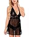 Voqeen Mujer Atractivo Pijamas de Encaje y Tul sin Mangas Atractivo Bodysuit Lencería Halter Pijama (Negro, Talla única)