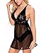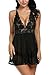 Voqeen Mujeres Body de encaje lencería semitransparente sexy sin mangas vestido de babydoll sin mangas para mujer Atractivo ropa de dormir (negro, M)