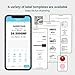 Múltiples funciones creativas y prácticas plantillas de etiquetas : Elija entre una gran variedad de plantillas prediseñadas que incluyen más de 1500 iconos, más de 270 bordes, más de 150 fuentes, 26 estilos y 11 idiomas para crear sus propias etiquetas personalizadas. Cree fácilmente etiquetas autoadhesivas desde dentro de la aplicación en una variedad de plantillas, incluyendo iconos, texto, tablas, símbolos, logotipos, códigos de barras, códigos QR, imágenes, tiempo, escaneo