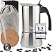 Milu Cafetera Italiana inducción| 2, 4, 6, 9 Tazas | Cafetera Moka de Acero Inox, Expresso Maker – Set comprensivo di sottobicchiere, cucchiaio, spazzola (4 tazze da 200 ml)