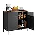 SONGMICS Armario de Almacenamiento, Aparador de Metal, Doble Puerta Magnética, Estante Ajustable, Marco de Acero, 40 x 80 x 76 cm, Marrón Rústico y Negro LSC102B01