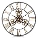 Lafocuse Reloj de Pared Grande Salon Engranajes, Vintage Reloj Metal Dorado Industrial, Silencioso Reloj de Cuarzo Números Romanos Retro para Bar Cafetería Cocina 58cm