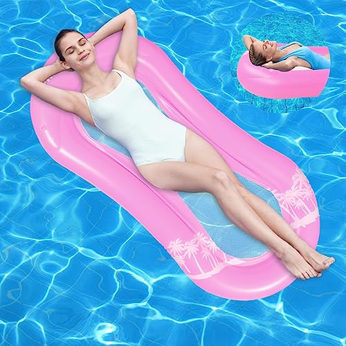 Yumcute Hamaca inflable de agua para piscina, tumbona flotante con malla inferior, portátil, multiusos, sillas flotantes para piscina, piscina, bañera de hidromasaje, flotadores de agua, rosa