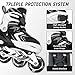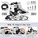 Cómodo: el forro interior acolchado grueso proporciona un ajuste suave y cómodo y una buena absorción del sudor. Diseñado con 3 capas protectoras: hebilla de fijación duradera, correa de velcro resistente al desgaste y cordones fuertes, ofrecen fuertes soportes para el tobillo. El freno único está equipado en el pie derecho para evitar el peligro de caídas. (Consejos: comprueba y aprieta las ruedas regularmente para evitar que se caigan)