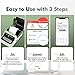 Fácil de configurar y usar, sólo tiene que descargar la aplicación y conectarse al fabricante de etiquetas a través de Bluetooth (sin conexión por cable) con un volumen de libro blanco gratuito. Después de abrir la tapa e instalarla, la aplicación reconoce automáticamente la plantilla, introduce el contenido e imprime, luego lo arranca e inserta en el elemento para que pueda guardar el contenido de la plantilla para la próxima impresión directa