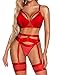 Aranmei Conjunto Lencería Mujer Sexy con Liguero Conjunto Sujetador y Bragas Aros Conjunto Lencería Gótica Recortada con Liguero y Puños Muslo, 4 Piezas, Sin Medias, Rojo, S