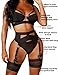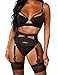Aranmei Conjunto Lencería Mujer Sexy con Liguero Conjunto Sujetador y Bragas Aros Conjunto Lencería Gótica Recortada con Liguero y Puños Muslo, 4 Piezas, Sin Medias, Negro, M