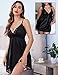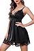Avidlove Sexy Lingerie Señoras Sexy Chemise Encaje Nightwear Cami Underdress Satén Lencería V-Cuello Dormir Vestido Negro XXL