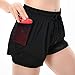 dowskwx Pantalón Corto Deporte Mujer Negro, 2 en 1 Forro de Sport Shorts con Bolsillo Malla para Running Correr Fitness Yoga Gimnasio (L)