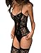 UMIPUBO Lencería Mujer Sexy Conjunto de Lencería de una Pieza Negra Mini Body Ropa De Dormir Babydoll Ropa Interior de Malla Transparente sin Tanga(Negro C,Talla única)