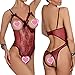 Vancavoo Lencería para Mujer Sexy Conjunto de Ropa Interior Sexy de Una Pieza Dormir Bodysuit Hueco sin Entrepierna Encaje Lencería(Wine Red,M)