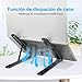 Ventilación Disipación de Calor: El ángulo de inclinación hacia adelante y el diseño abierto ofrecen una mejor ventilación y circulación de aire, el soporte para portatil se puede absorber fácilmente el calor para lograr efectos de enfriamiento y un flujo de aire natural para evitar que su portátil se sobrecaliente