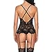 HOTSO Lencería Sexy Mujer Ropa Interior Eróticas Babydoll Body de Encaje con Liguero y Tanga Conjunto de Lencería Teddy Lingerie Escote V (Negro, S)