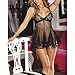 ROSVAJFY Conjunto de Lencería Sexy para Mujer con Medias, Vestido de Rejilla con Cuello Halter, Picardías Ropa Interior Transparente sin Mangas, Babydoll Atractivo Pijama (Negro)