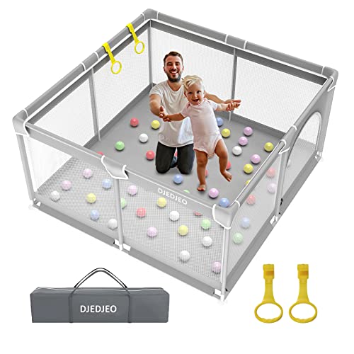 DJEDJEOROBUSTO Y SEGURO. El marco del área de juegos para bebés está conectado con un tubo de aleación a prueba de óxido y una junta de ABS, que es fuerte y estable, que puede soportar el peso de los adultos sin doblarse, la parte inferior está hecha de tela especial resistente al desgaste, antideslizante, libre de BPA y no tóxica. La cubierta de tela de la valla hecha de esponja engrosada cubre el punto de conexión de la valla, lo que reduce eficazmente los daños.