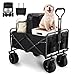 【Rueda más ancha y frenos dobles】 Vagones plegables con ruedas grandes para todo terreno de 8 «» de diámetro que son tres veces más anchas que las ruedas de otros vagones, lo que significa que puede llevarlo a cualquier lugar, como arena, barro, hierba, baches y bordillos Las ruedas delanteras con frenos pueden girar 360°, lo que es seguro y utilizable.
