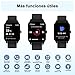 【Supervisión del Salud】Este reloj smartwatch mujer monitoriza sus datos de salud como el oxígeno en la sangre, y la frecuencia cardíaca, etc, pero también sus estados de sueño. Este reloj inteligente mujer hombre le ayuda a formar un estilo de vida más saludable, y tener una mejor condición de salud.(Atención: Este smartwatch no es un sustituto de los equipos médicos, en caso de enfermedad, por favor consulte a su médico para obtener asesoramiento médico profesional).