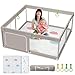 Uanlauo parque infantil bebe con alfombra de juegos plegable, 150x150x68cm grande parque bebe, parque de juegos bebe con 4 Piezas Anillas, zona de juegos interior para bebés con puerta de cremallera