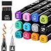 Tongfushop Rotulador de 12 Colores, Rotuladores Alcohol Doble Punta, 2S Secado Rápido Marcadores Permanente con Bolsa de Almacenamiento y Espaciador para Niños, Adultos Bocetos, Cómics, Colorear