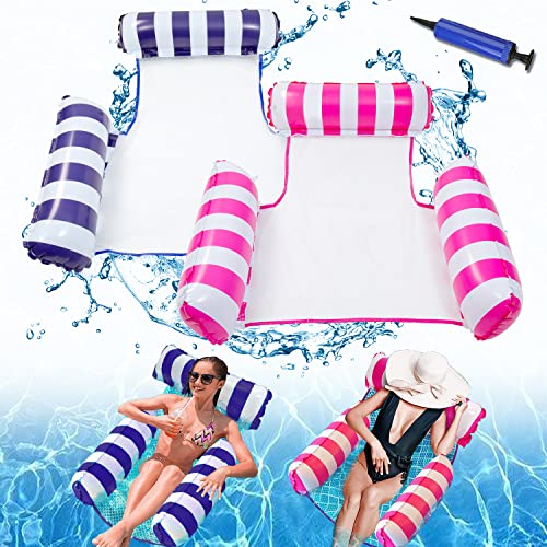 Hamaca Flotante para Piscina, 2 Piezas Hamaca Inflable Tumbona, 4 en 1 Hamaca Inflable Piscina, con Bomba de Aire, Piscina Plegable Colchoneta Flotador, para la Piscina Verano Playa Mar Piscina