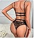 ★【Diseño sexy y elegante】Conjunto de liguero de 3 piezas de lencería sexy hecho de encaje de malla elástica, cuenta con copas de encaje transparente floral, correas de espagueti ajustables que permiten un ajuste perfecto y muestran la curva de tu cuerpo. Estampado calado, sexy y seductor.. Las bragas + liga están empalmadas con encaje floral y cordones, que te ayudan a mostrar tus líneas elegantes y te hacen más noble en la noche.