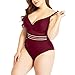 Prevently Traje de baño para mujer de color liso de talla grande con material de nailon altamente elástico, correas de hombro ajustables y copas con aros, rojo, 4X-Large