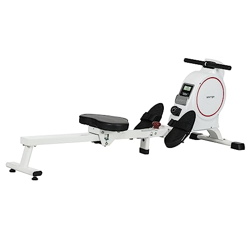 SPORTNOW Máquina de Remo Magnético Plegable Remo para Casa con Pantalla LCD Resistencia de 8 Niveles y 2 Ruedas Carga 130 kg para Gimnasio Acero 180x48x60 cm Blanco