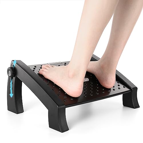 Mkitnvy Reposapies de Oficina, Reposapiés Ergonómico para Escritorio con Función de Masaje, Ajustable en 6 Niveles de Alturaantideslizante para pies, ideal para oficina y hogar (A)