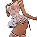 Najiny Conjunto De Lencería para Mujer Lencería con Liguero Brasier De Encaje y Bragas Babydoll Mini Falda Ligas De Peluche Juego 5 Piezas Sexy Sujetadores Liguero Tanga (Rosa, L-XL)
