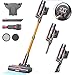 Versión Mejorada de V Brush y Siete en Uno: Esta aspiradora sin cable potente cuenta con un nuevo cepillo giratorio en forma de V con un cabezal de cepillo flexible de 270° que combina cerdas suaves y duras, cerdas giratorias en forma de V y cerdas tipo peine, y un motor de 5C para un mejor acceso a los conductos de aire y reducción del enredo del cabello. El tubo telescópico 7 en 1 viene con una variedad de accesorios para mejorar los resultados de la limpieza, facilitando la limpieza de puertas, grietas de sofás y bordes de alféizares de ventanas.