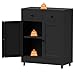 JINKUR Armario de almacenamiento de metal con 2 puertas y estante ajustable, aparador de acero para el hogar, oficina, entrada, sala de estar, despensa de cocina y comedor (negro)