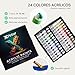 🖌 COLORES ACRÍLICOS BRILLANTES, MEZCLABLES Y DE SECADO RÁPIDO El set incluye 24 tubos de acrílicos al agua de 12 ml, seguros y no tóxicos, con pigmentos de alta calidad que garantizan trazos intensos y duraderos. Su textura cremosa facilita mezclas vibrantes y transiciones suaves, logrando resultados profesionales en todo tipo de superficies: lienzo, papel, cartón, madera, piedra, cerámica o tela. Al secar rápidamente, permiten superponer capas sin esperas y aseguran obras resistentes al paso del tiempo.