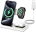【Cargador inalámbrico 3 en 1 de Apple】 Esta estación de carga plegable iPhone carga de forma inalámbrica para i Phone, Apple Watch, Air-Pods. Compatible con i Phone 16/16 Pro/16 Pro Max/16 Plus,iPhone 15/14/13/12/Pro/Pro Max/Plus/SE/XR /X/xs/xs max/11 pro max/11 pro/8 plus/8; Apple Watch Ultra 2/Ultra/10/9/8/7/6/5/4/3/2/SE/SE2, Air-Pods Pro 4/3/2(con estuche de carga por cable) y más teléfonos móviles y auriculares de carga inalámbrica.