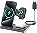 【Cargador inalámbrico 3 en 1 de Apple】 Esta estación de carga plegable iPhone carga de forma inalámbrica para i Phone, Apple Watch, Air-Pods. Compatible con i Phone 16/16 Pro/16 Pro Max/16 Plus,iPhone 15/14/13/12/Pro/Pro Max/Plus/SE/XR /X/xs/xs max/11 pro max/11 pro/8 plus/8; Apple Watch Ultra 2/Ultra/10/9/8/7/6/5/4/3/2/SE/SE2, Air-Pods Pro 4/3/2(con estuche de carga por cable) y más teléfonos móviles y auriculares de carga inalámbrica.