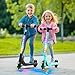 【Sea una chica o un niño genial】: Las ruedas y los faros de nuestro scooter eléctrico para niños están equipados con luces LED intermitentes. Las ruedas delanteras son inducidas electromagnéticamente para que cuando su hijo conduzca en el scooter kick, se enciende. El diseño de la luz del arco iris agrega más diversión a la experiencia de conducción de su hijo