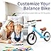 Marco de acero al carbono resistente & Seguridad: Construido con un marco de acero al carbono duradero, esta bicicleta balance sin pedales ofrece un soporte sólido y puede cargar hasta 50 kg. Los manillares antideslizantes y el descanso-pies garantizan una agarre seguro, mientras que el asiento acolchado ergonómico asegura el confort en cada paseo. Su hijo puede disfrutar horas de diversión, desarrollando confianza, coordinación y equilibrio.