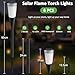 FIFlying[Dos Modos de Iluminación] – Las luces de llamas solar exterior jardin están equipadas con dos modos de iluminación: Modo de llama danzante y modo de encendido constante. En el modo de llama, las antorchas solares exterior pueden emitir una luz de llama suave, danzante y realista. En el modo de encendido constante, las lampara solar exterior emiten una luz cálida similar al ámbar más brillante y transparente, creando una atmósfera natural como decoración para su patio, jardín y campamento.