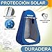 El revestimiento plateado, de la tienda ducha cambiador de playa, protege de los rayos solares, mientras que la membrana impermeable repele el agua y la humedad, además, su puerta con cremallera garantiza privacidad y tranquilidad al cambiarse.