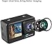 Camara Deportiva de pantalla dual: el exclusivo diseño de pantalla dual delantera y trasera hace que sea conveniente tomar selfies y obtener vistas previas en tiempo real. Capture fácilmente su imagen más bella de sí mismo sin la ayuda de otros. Al mismo tiempo, la pantalla trasera puede proporcionar una mejor experiencia operativa, asegurando que puedas ver claramente lo que estás fotografiando.