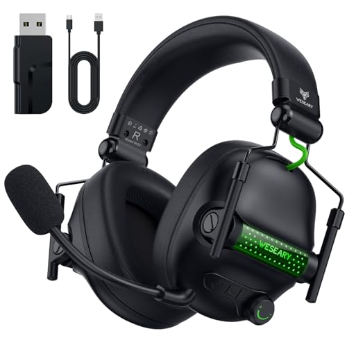 WESEARY WG1 Cascos Gaming Inalambricos, Auriculares Gaming Inalambricos para PS5, PS4, PC, Switch, Sonido Estéreo Auriculares Gaming con Microfono, Cascos con Luz LED, Duración 50Hr+